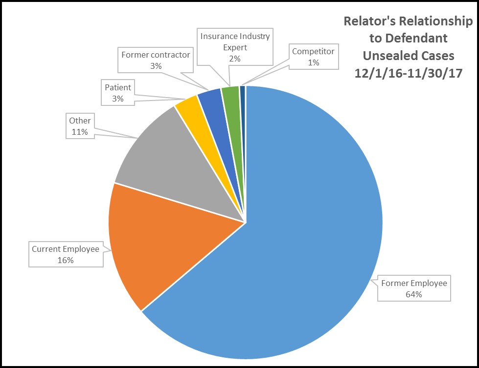In the cases unsealed between December 1, 2016 and November 30, 2017, four out of five relators were current or former employees: