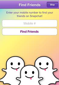 - Collect Only What You Need and Consider User Expectations – Many of the claims in the FTC’s complaint focused on Snapchat’s implementation and operation of its “Find Friends” feature. This feature allows a user to let Snapchat determine whether that user had friends who use the application. The FTC alleged that in offering the Find Friends feature to its users, Snapchat implied that the mobile phone number was the only information collected and processed, when in fact the Find Friends feature also collected the names and phone numbers of all the contacts in that user’s address book. The FTC’s determination process is instructive because it is based on a combination of Snapchat’s policies, a lack of notice, and the appearance of its user interface. Until February 2013, Snapchat’s privacy policy disclosure regarding Find Friends not only failed to fully describe the information collected by the app in connection with that feature, it also emphasized “phone number” in the list of collected data. Prior to September 2012, phone contacts were accessed by the app without providing a warning to users (a just-in-time notification was added to the iOS operating system at a later date). Finally, there is the interface itself (below), which according to the FTC’s allegations, implies that only collection of the phone number is involved.